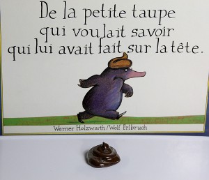 Chez Macaron-Passion, nous avons choisi l’histoire « De la petite taupe qui voulait savoir qui lui avait fait sur la tête »